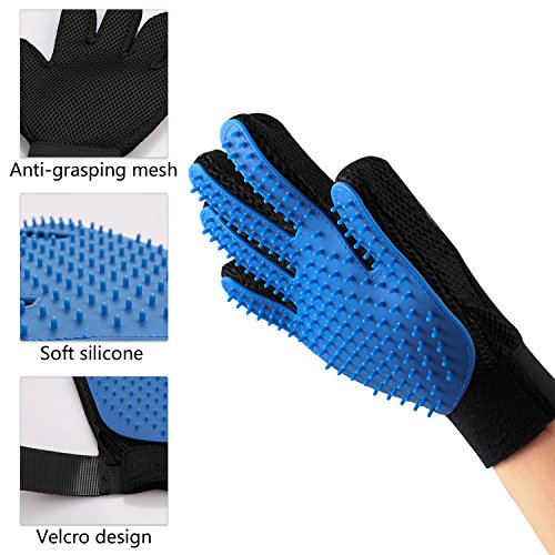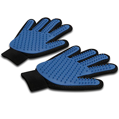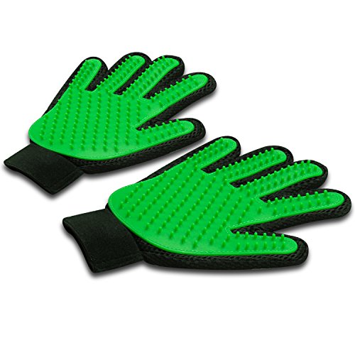 Set of 2, Left hand & Right Handed Pet Hair Removal Gloves, the 5finger deshedding glove do well in removing & trapping loose furry pet hair, minimize the flying fur in your house, keep your house clean and pets healthy