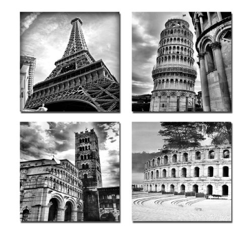 -. Title : Wieco Art - Architectures Modern 4 Panels Giclee Canvas P.R.Ints Europe Buildings Black and White Landscape Pictures Paintings on Canvas Wall Art Ready to Hang for Bedroom Home Office Decorations