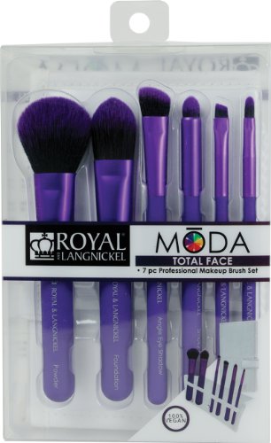 -. Binding : Health and Beauty -. Brand : ROYAL BRUSH -. Feature : Colored brushes. / Brushes stored in wrap case. / Synthetic bristles create a more precise application. / Synthetic brushes are easier to clean and repel bacteria and dirt better. / Cruelty free and 100% vegan. -. Label : Royal Brush -. Manufacturer : Royal Brush -. NumberOfItems : 1 -. PackageQuantity : 1 -. ProductGroup : Beauty -. ProductTypeName : BEAUTY -. Publisher : Royal Brush -. Studio : Royal Brush -. Title : Royal Brush Moda Total Face Cosmetic Brush Set and Case