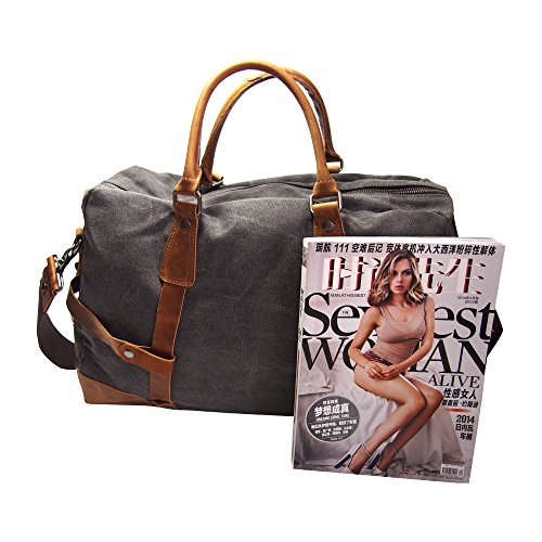 - Title : Samic® Casual Life Style Canvas Leather Handbag / Travel Bag / Weekend Bag