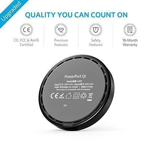 What You Get: Anker PowerPort Qi (Single-Coil Qi Wireless Charger), Anker 12W wall charger, Micro USB cable, welcome guide, 18-month hassle-free warranty and friendly customer service.