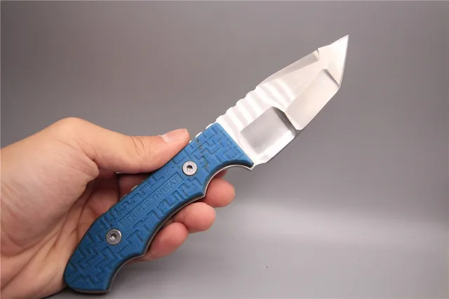 | [해외] D2 고정 스틸 블레이드 캠핑 야외 생존 나이프 전술 나이프 도구 나이프 블루 핸들 멀티 sharp 편리한 삼각형 헤드 |