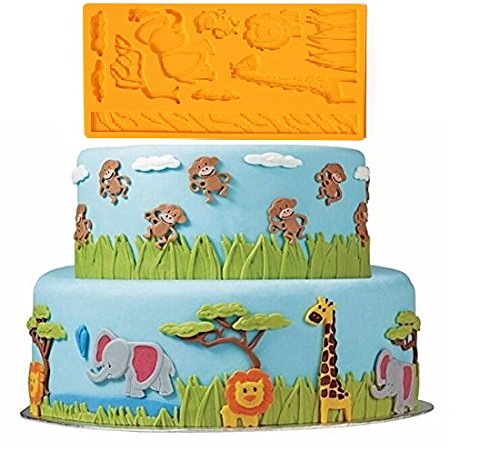 3D Lace Zoo Silicone Embossing Mold, Animal Jungle World Fondant Cake Mold, Cake Decoration Candy Making Mold