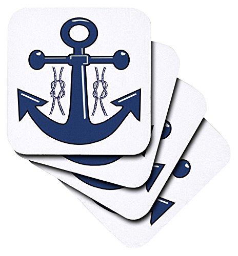 3dRose Navy Blue Anchor N Nautical Knots - Ceramic Tile Coasters, Set of 4 (cst_47900_3)