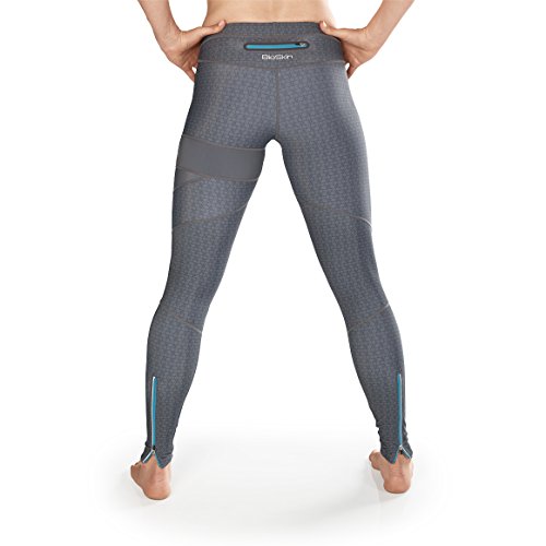 -. Binding : Apparel -. Brand : BioSkin -. Color : Charcoal Hex -. Department : womens -. Feature : ZIPPERED POCKET: Over-sized back pocket fits iPhone 6 / COMFORTABLE COMPRESSION: 20% Lycra gives compression and secure fit / REFLECTIVE DETAIL: Zippers at ankles with reflective detail / STAYS IN PLACE: Compressive fabric hugs you just right so you won't need to keep readjusting your tights / DURABLE: Fabric stays looking brand new because it won't pill or collect lint. -. PackageQuantity : 1 -. ProductGroup : Apparel -. ProductTypeName : PANTS -. Title : Perfect Fit Running Compression Tights with Zippered Phone Pocket