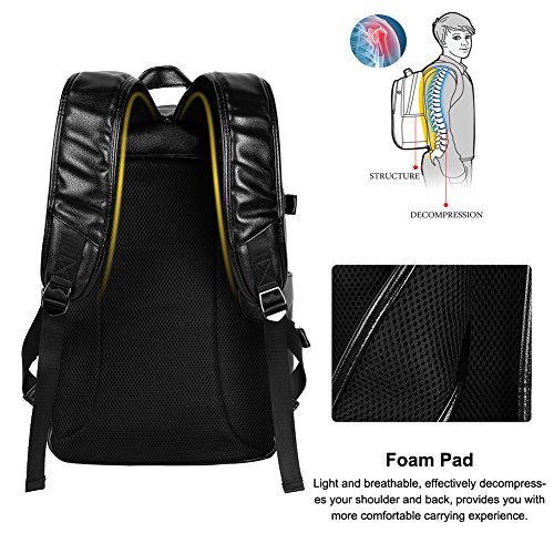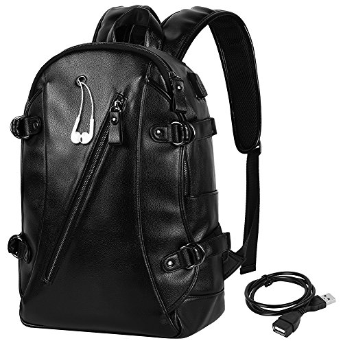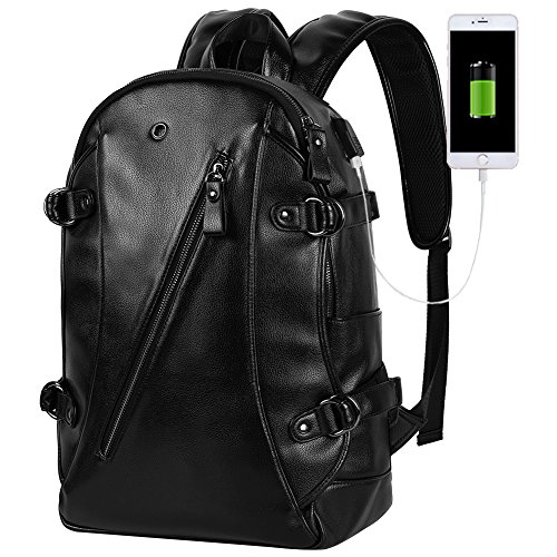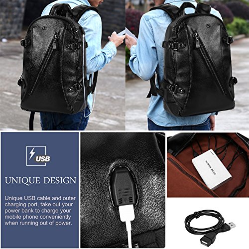 -. Title : Vbiger Men Backpack PU Leather Laptop Backpack Waterproof Casual Travel Backpack Large Capacity School Backpack with USB Charging Port for 15Inch Laptop
