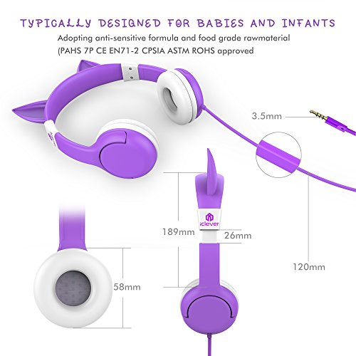 ICLEVER SAFE KIDS HEADPHONE: Custom designed for children ages 3 and up, with adjustable headband and cushioned earpads and headband (Recommended for kids age 3 to 12)