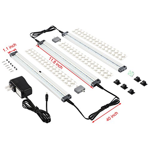 12 inch Panels LED Under Cabinet Lighting, with IR Sensor! Hand Wave Activated - Bright, Strong and Stable - Easy to Install, Screw and 3M Sticker Options Included –Set of 3, 5000K, White