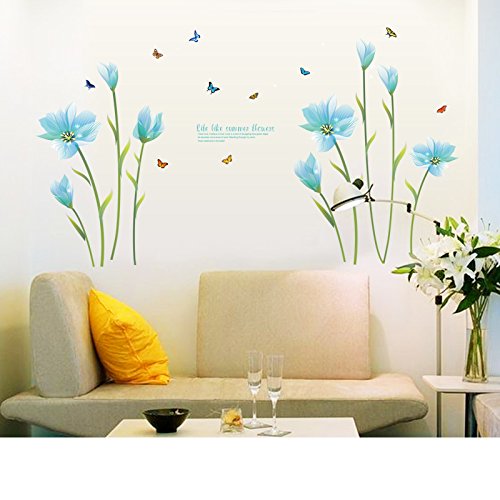 -. Title : Romantic Blue Lily Wall Stickers Flowers Wall Decals Life Like Summer Flower Living Room Bedroom Removable PVC Wall Stickers Murals Living Room Bedroom Nursery Decoration