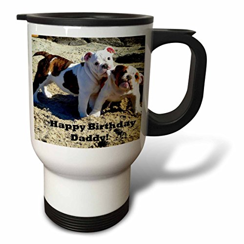 3dRose tm_40635_1 English Bulldog Happy Birthday Daddy Travel Mug, 14-Ounce, Stainless Steel