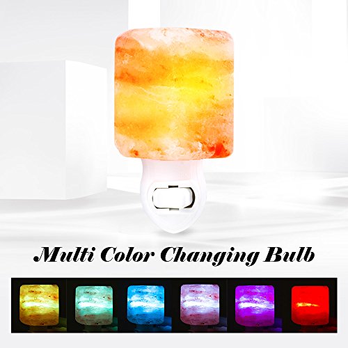 SMAGREHO Mini Hand Carved Natural Crystal Himalayan Salt Lamp night light with Normal Bulb and Multi Color Changing bulb with UL-Approved Wall Plug (square-shaped)