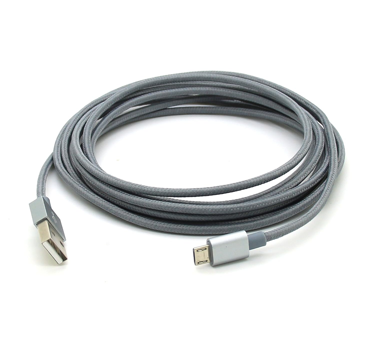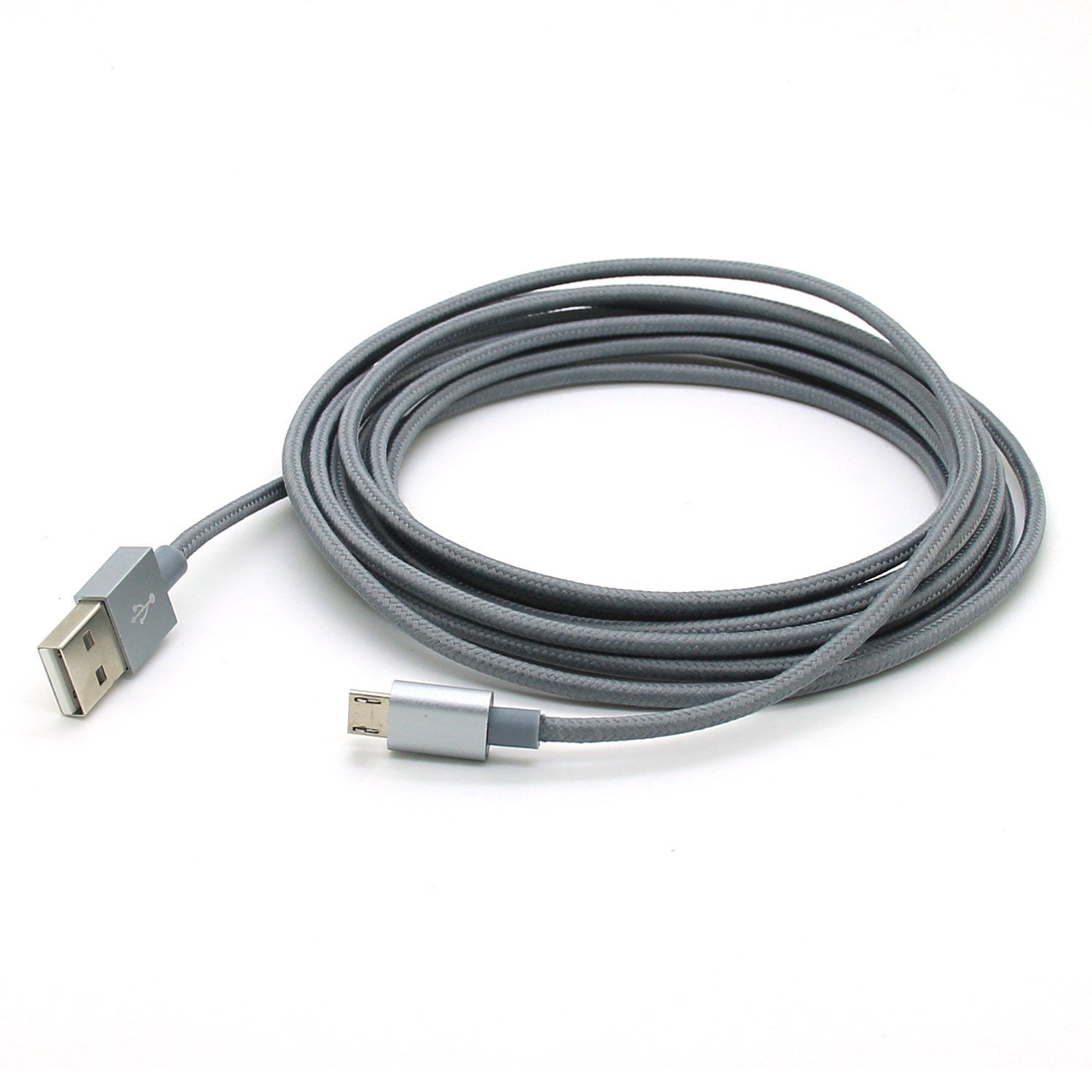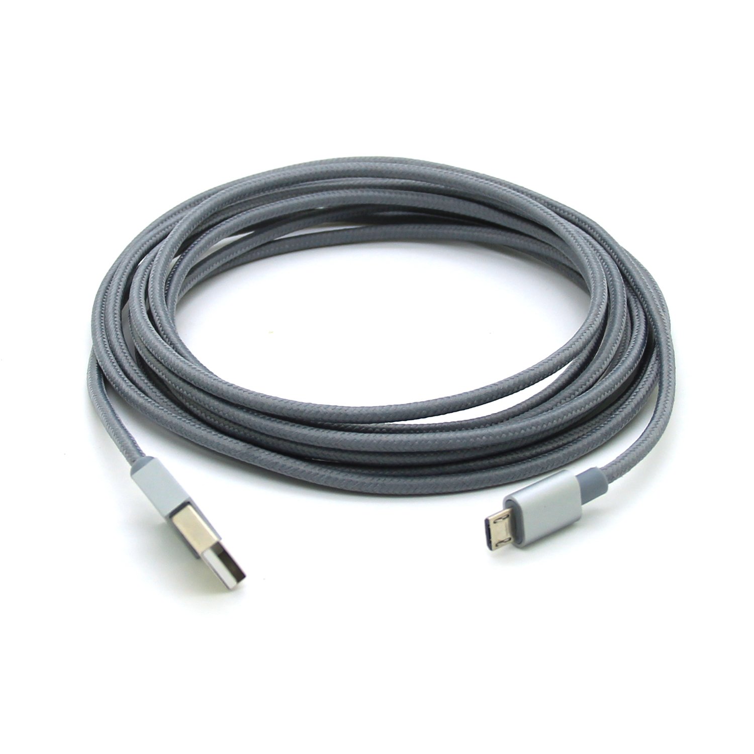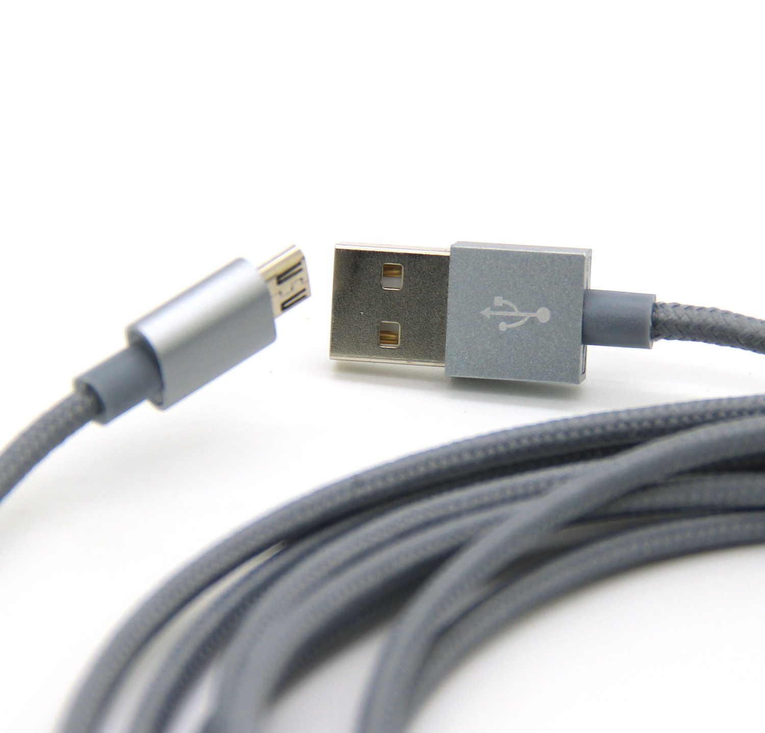 2Pack 3M 10FT Extra Long Tangle Free Nylon Braided High Speed Micro USB Charging Data Sync Cable Charger Cord With Aluminum Heads for Samsung HTC LG Huawei Xiaomi ZTE (Grey)