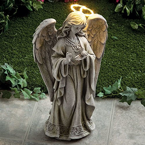 Bits and Pieces - Solar Garden LED Angel of Peace Statue with Light-Up Halo 21 Inches Tall - Beautiful Garden Sculpture Garden Décor Polyresin Statue Yard Art