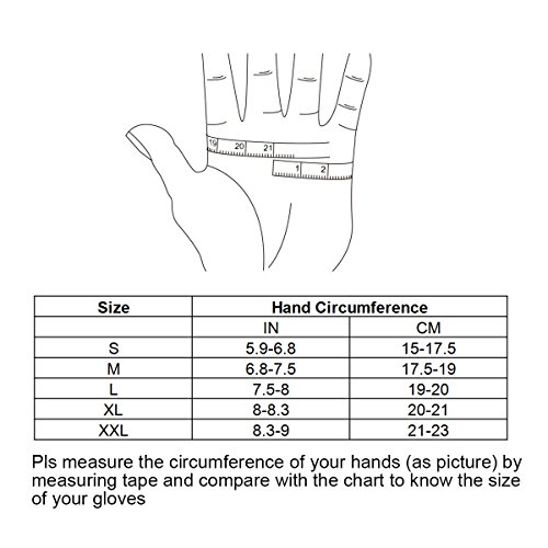 -. Feature : All-Purpose gloves: Suitable for Weight Lifting, weighted training, powerlifting, pull up & general workouts, bodybuilding, exercise, fitness, sporting, cycling and gym training.,etc. Designed to get the perfect fit for men/women(ladies/female)/trainers/athletes. Highest quality gloves in the market come in 5 Sizes: S, M, L, XL, XXL. Pls measure the circumference of your hands (as picture) by measuring tape and compare with the chart to know the size of your gloves. / Durable Microfiber Material: Made with high quality yet lightweighed microfiber to allow for a comfortable workout. Double stitched and built to last ideal for heavy lifting or if you want extra support/protection. / Dual Velcro straps hooks with breathable mesh: According to your own demand to adjust the degree of tightness and stabilize and secure the wrist. Permeable ventilated mesh backing allows sweat to evaporate and hands stay dry. / Get a stronger grip in seconds: the special layer palm position has the advantage of wear resistant, antiskid function. Silica gel pads and dots provide friction to keep weights safely in your grasp. You can focus on your form and not on keeping hold of the bars. Pull Tabs on fingers and wrist make it easy to pull gloves off/on. Sold as pair (2 gloves) / Warranty period: 12 months from the date of purchase. If your not thrilled, simply contact our reliable customer service team and you will receive unmatched personal assistance.