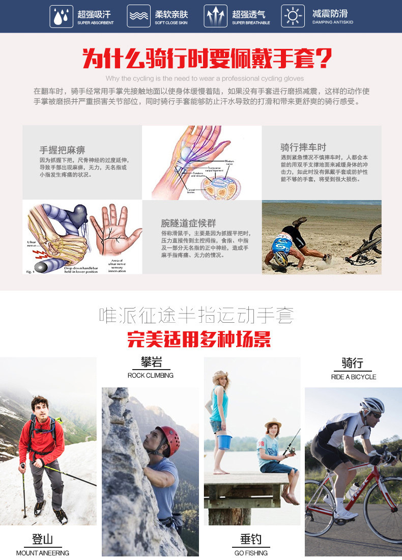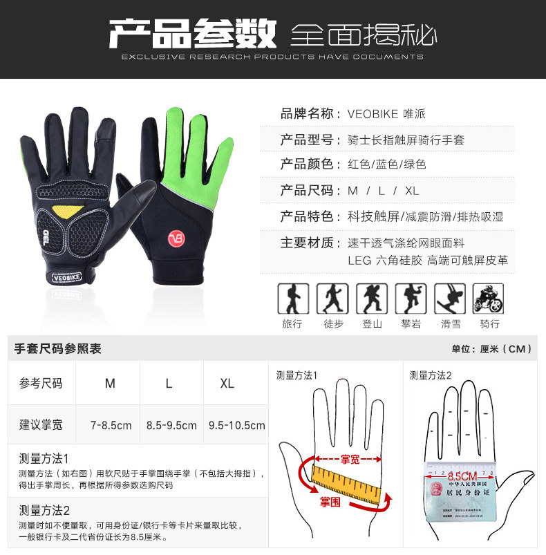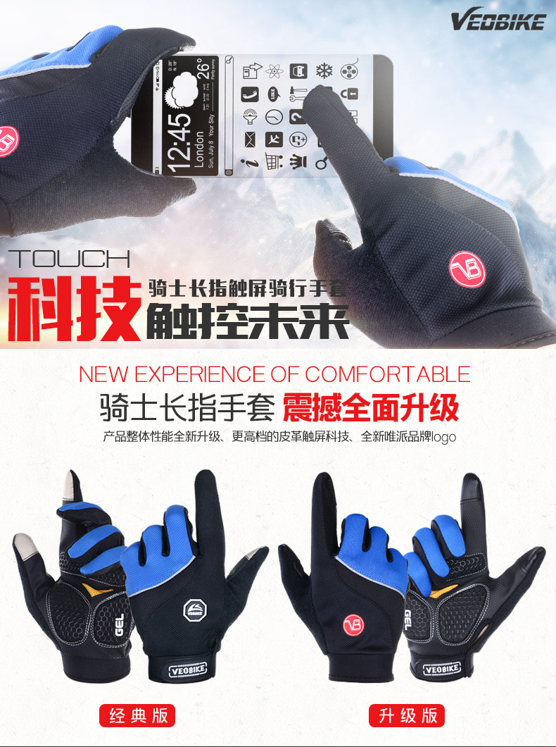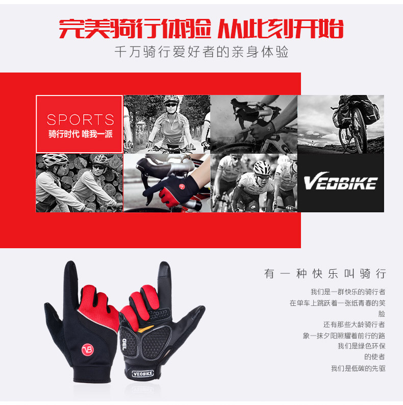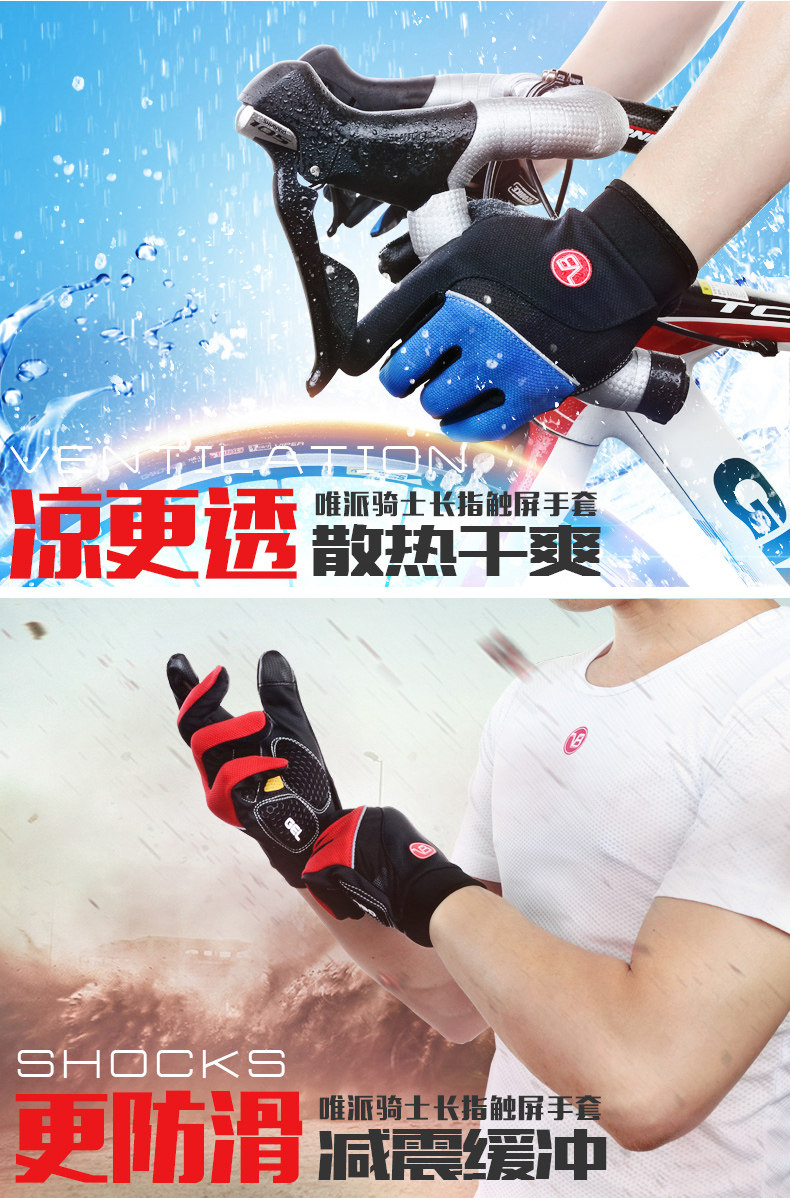骑士男女款长指骑行手套 山地自行车装备全指手套 单车手套