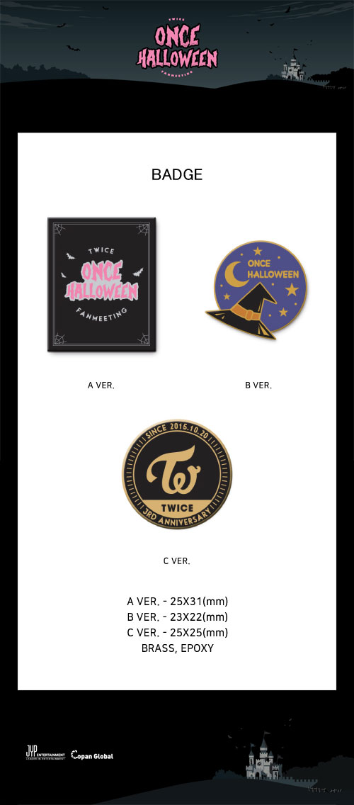 韓国スターグッズ TWICE(トゥワイス) FANMEETING [ONCE HALLOWEEN] OFFICIAL MD - バッジ(3種1択)(予約 発売日:2018.11.12以後)