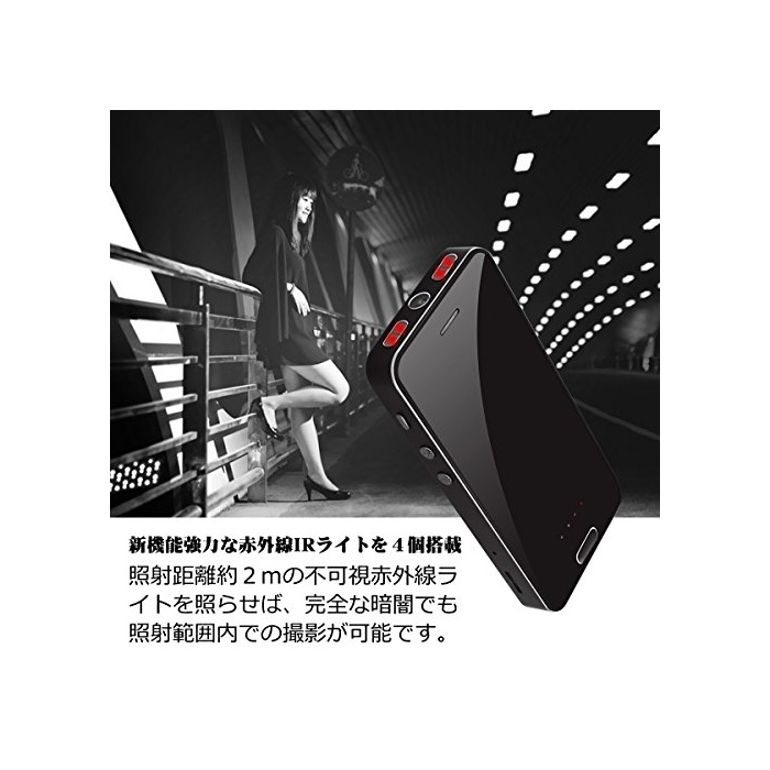 【암시 촬영 기능】신기능 강력한 적외선IR라이트를 4 개탑재, 조사 거리 약2m의 불가시 적외선 라이트를 비추면,완전한 어둠에서도 조사 범위내 에서의 촬영이 가능합니다.4개 라이트는 눈에 보이지 않는이 나와 방범 기록에 활용으로 옵니다.
