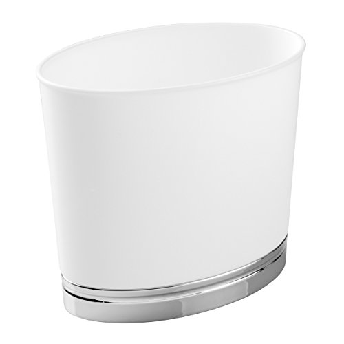 mDesign Oval Wastebasket Trash Can for Bathroom, Kitchen, Office - White/Chrome