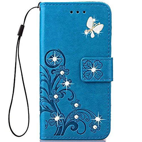 LG X Power Case,LG X Power Wallet Cases,Fashion Handmade 3D Bling Diamond PU Leather Stand Flip Case Cover With Card Holder Folio Wallet Case for LG X Power (Blue)