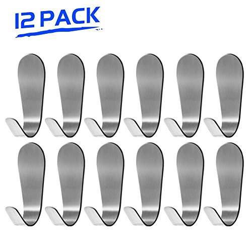3M Self Adhesive Wall Hooks for Hanging Pans Pots Coat Towel Robe, for Outdoor Kitchen Bathroom, Large Stainless Steel Brushed Nickel Waterproof Silver (pack of 12)