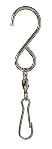 In the Breeze Item SB30 - Hang-It S Hook with Ball Bearing Swivel is made with stainless steel material. Use to display hanging décor including windsocks, spinners, wind chimes, sun catchers and more.