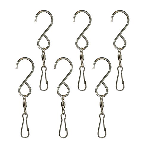 In the Breeze Stainless Steel Hang-It S Hooks with Ball Bearing Swivel - 6 PC - Smooth Spinning Swivel Hook Clip for Hanging Décor