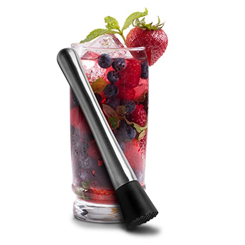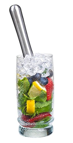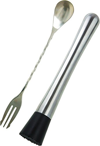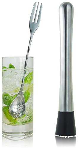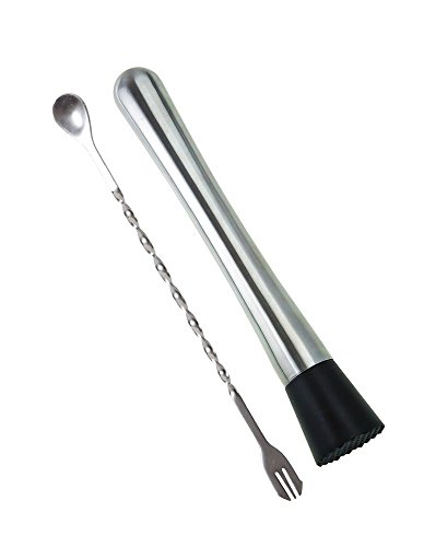 -. Feature : 8.15" Stainless Steel Muddler & 10.35" Stainless Steel Mixing spoon as Set. / Grooved nylon head for 'just right' mashing of Fruits, Herbs and Spices. / Dishwasher safe. Easy to use, clean and store. / Nylon head to protect glass from scratching.