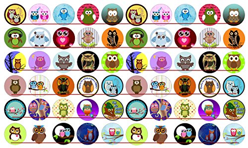 60 Precut 1" CUTE OWLS Bottle Cap Images A