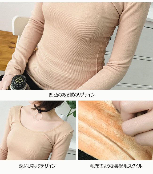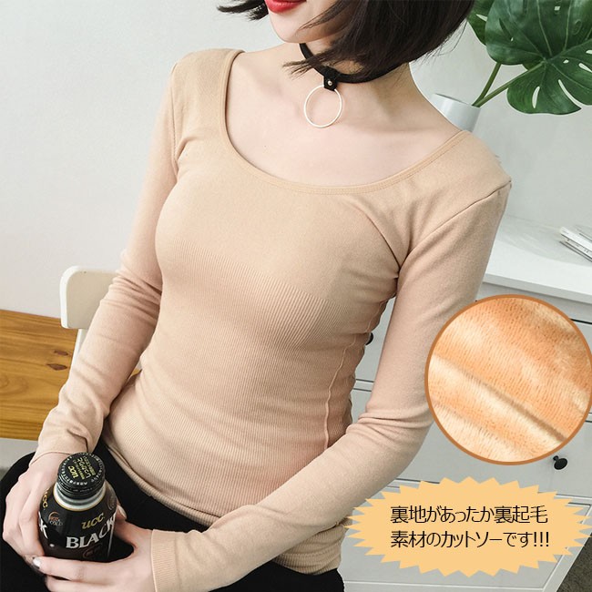 | 商品名 | 裏起毛 カットソー レディース Uネック 裏ボア Tシャツ インナー 長袖 あったか 着痩せ ストレッチ 秋冬 保温 2018春新作 |