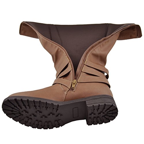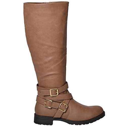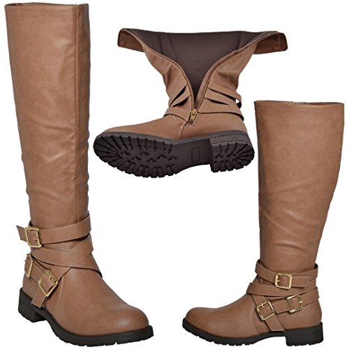 Binding : Apparel Product Description Give your daily outfit that extra flare with these casual knee high boots. Features a rounded toe with adjustable criss-crossed side buckles. Zipper Closure. Material: Man Made Leather. Available in Black and Camel. US Womens Sizes 5.5-10Boot Length: 10.5 inches approxBoot Height: 17 inches approxBoot Opening: 15 inches approxHeel: 1.5 inchesPlatform: 0.5 inchesNote that all measurements were taken with a Size 7 0