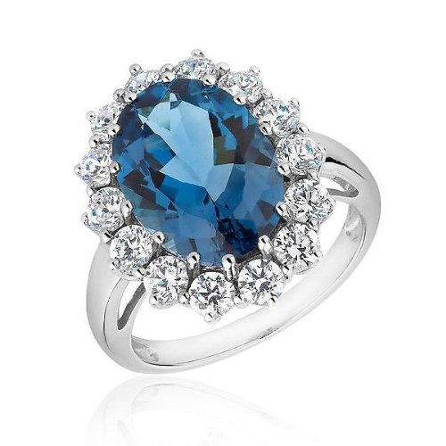 -. Title : London Blue Topaz and Created White Sapphire Ring