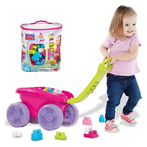 Studio : by Mega Bloks Publisher : by Mega Bloks Binding : Kitchen Product Description The Pink Mega Bloks Big Building Bag promotes imagination and learning in your little one. The set comes with 80 blocks in all different colors. Children can build anything they dream up when they use these blocks with all sorts of special shapes. These award winning building blocks promote eye-hand coordination and fine motor skills for children ages 1 to 5. Watch them learn and grow as they build tall towers, crazy castles or funny animals. This Mega Blocks building bag includes big blocks that are easy to pick up for those little hands. They fit together and come apart easily so your child will build confidence as they create masterpieces. The Pink Mega Bloks Big Building Bag comes with its own handy storage bag making clean up a breeze. Your little builder can expect lots of fun surprises with the Block Scooping Wagon by Mega Bloks First Builders! This colorful wagon combines classic wagon play and construction fun with a block-picking surprise, as your little one can push to pick up the included First Builders blocks! Watch the blocks spin inside the clear compartment when your little one pushes the wagon along on its big sturdy wheels. Or, they can pull it along using the easy-to-grip folding handle. Dump the blocks out and use them to build anything your little one can imagine. You can even build directly onto the wagon's handle! With so many ways to play, your little one will love rolling and building with this block-picker wagon! This is ideal for ages one to five years. 0