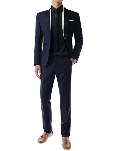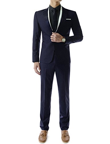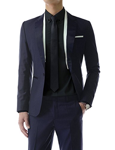 - Title : (DMS115) Classic Slim Fit Sateen Lapel Pocketchief Blazer Pants Dress Suit Set NAVY Chest 40(Tag size XL)