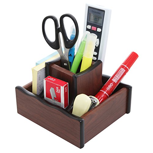 5 Compartment Wood Rotating Desktop Office Supply Organizer Storage Caddy