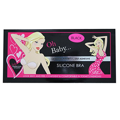 Lady Princess Intimates Women Self-Adhesive Silicone Bra Black D-Cup