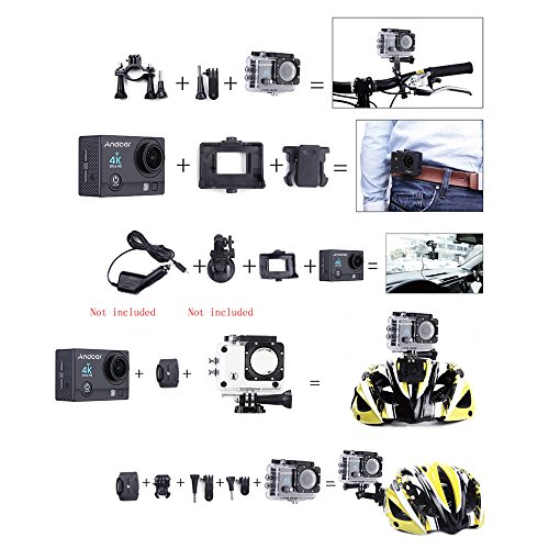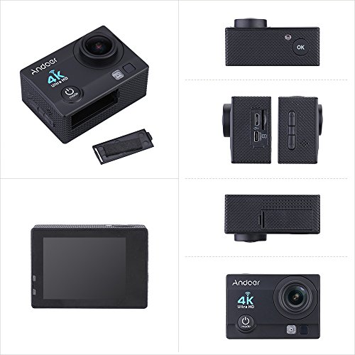 Andoer 2" Ultra-HD LCD 4K 25FPS 1080P 60FPS Wifi Cam FPV Video Output 16MP Action Camera 170°Wide-Angle Lens with Diving 30-meter Waterproof Case (Black)