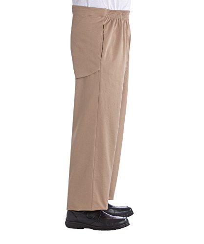Binding : Apparel Product Description You Asked for adaptive clothing for men with cotton and We Listened! Open back pants are now available in breathable, quality machine washable soft polyester-cotton! Styled with two side pockets and a zipper fly. Comfortable multi-needle elastic waist with adjustable snap closure. Large back flap. Adaptive pants for men who are wheelchair users offers both convenience and discretion to those who use a wheelchair, or who are incontinent or have incontinence issues. Wheelchair pants are designed for dressing from a seated position! Terrific for those that do not weight bear. How do you put these mens wheelchair pants on? The individual remains in a seated position. The individuals legs are inserted into the pant legs and drawn up to the upper thigh. The caregiver simply snaps the generous overlap into place. The person being dressed is left completely covered without ever having to stand. Assisted disrobing is just as easy. These mens adaptive pants for handicapped men are terrific for elderly/seniors who are disabled or wheelchair dependent. This item is usually offered in a full figure plus size range. A great product for home care, retirement and nursing home settings. Adaptive Pant Sizing:S (30-32) M (34-36) L (38-40) XL (42 -44) 2XL (46-48) 3XL (50-52) 0