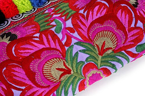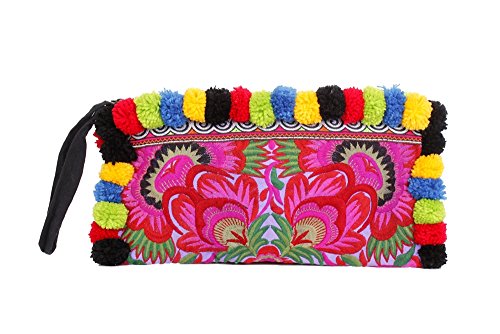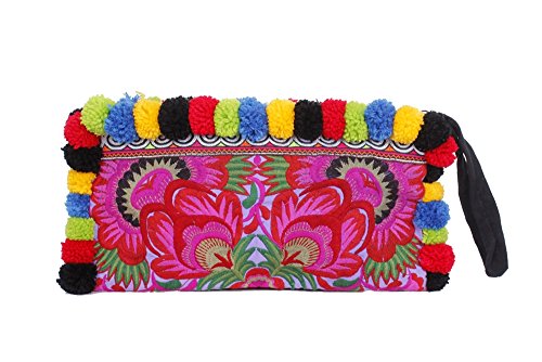 -. Title : ETHNIC LANNA Women Hmong Wristlet Clutch, Embroidered Purple Flowers Handmade in Thailand