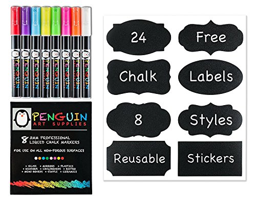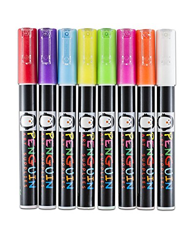 VIBRANT NEON COLORS - Penguin Arts liquid chalk markers use a high-quality, super-concentrated liquid chalk that provides bright, vibrant, fluorescent colors each and every time. These eye-catching colors give you the ultimate in creative expression! Great for Chalkboard Stickers, Chalkboard Contact Paper, Menu Boards, Bistro Boards, Window markers, Car Windows, Kids art, School work, etc