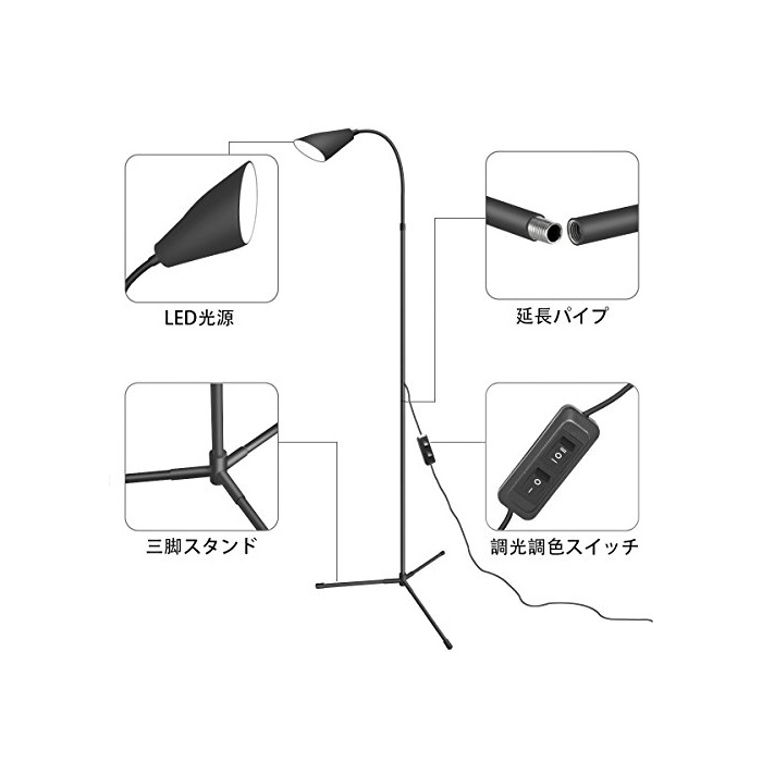 원본상품명: LEDフロア仕事書ランプ フロアスタンド 組立式 led 調色+調光機能付き フロアライト LEDスタンドライト 北 リビング、室用 ブラック