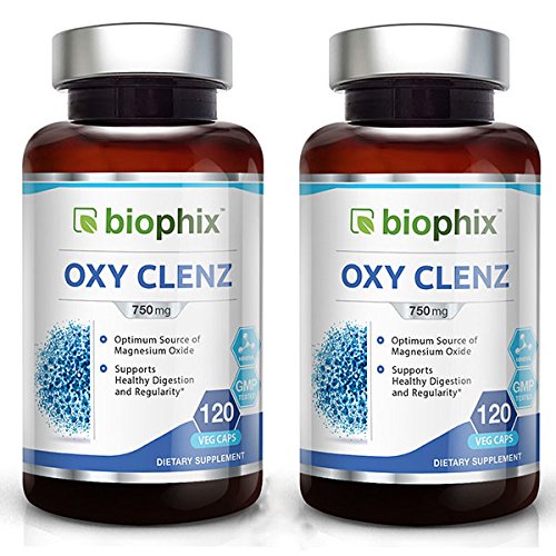2 Oxy Clenz 750 mg 120 Caps Pack - Magnesium Oxide Digestive Colon Cleanse Regularity