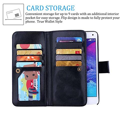 - Title : Galaxy Note 4 Case, Note 4 Case, TabPow [Wallet Case] 9 Card Holder [Detachable Wallet Folio] Black PU Leather Flip Case with Wrist Strap For Samsung Galaxy Note 4