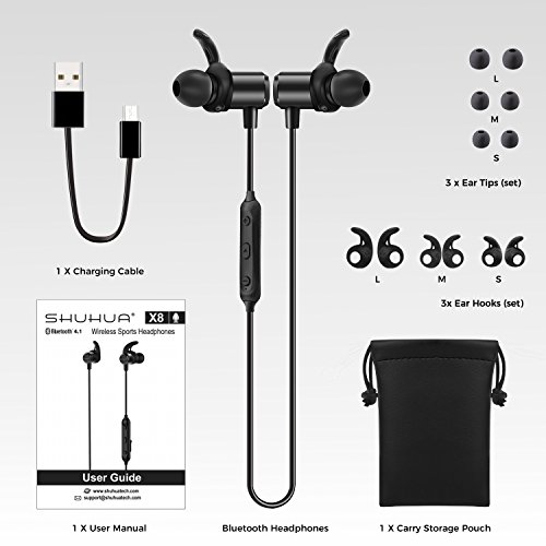 SHUHUA Magnetic Wireless Bluetooth In-Ear Earphones with 8 Hours Playing time and MIC Stay Connected with Bluetooth 4.1 Minimizes power consumption while providing a more stable and reliable connection.