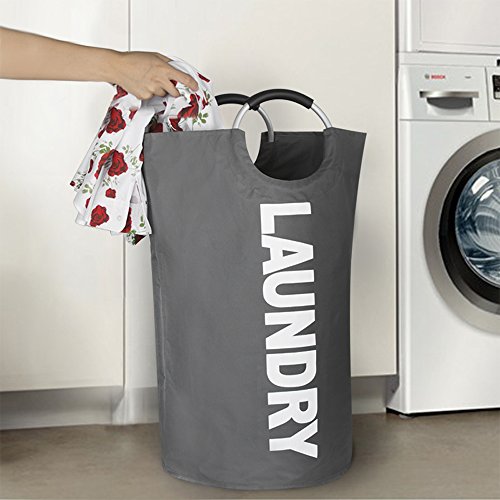 Laundry Hamper Oxford Metal X-Frame Laundry Basket Clothes Storage (Grey)