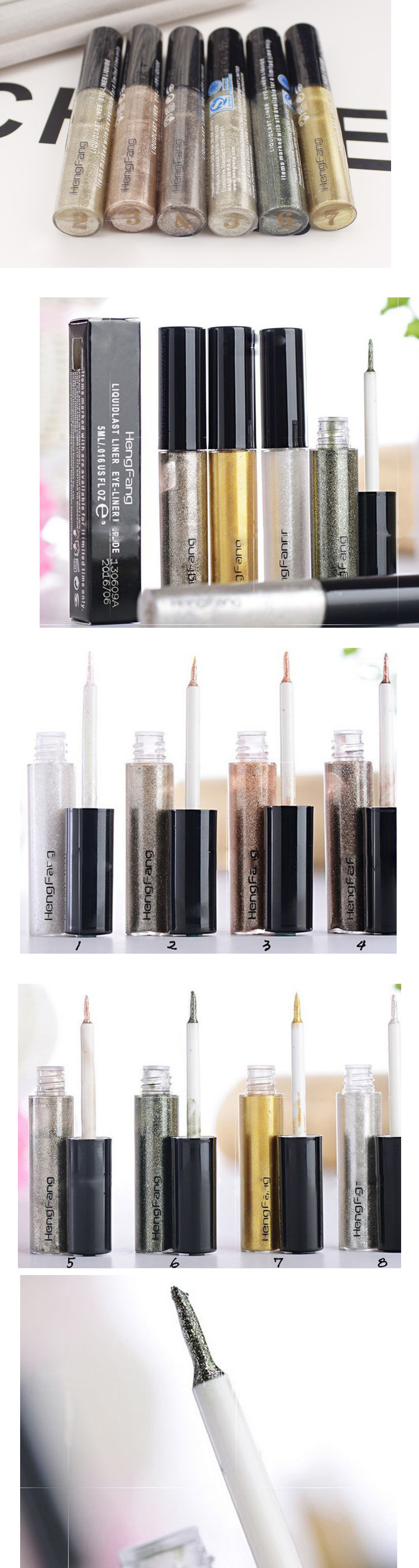 Make shining Eyeliner tears necessary Oh, the texture is very fine, delicateflash particles, not very exaggerated, waterproof lasting makeup, apply a little in the corner of the eye, immediately there is delicate and touchingeffect Oh, show big eyes Oh, 8 color options, each section are verybeautiful