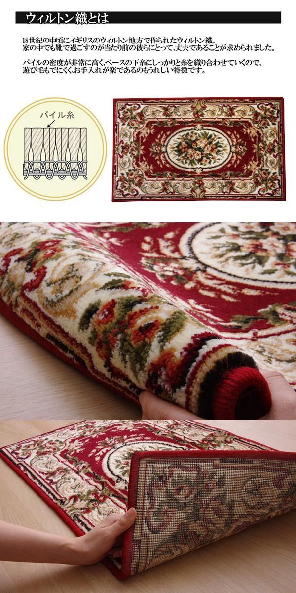 ウクライナ製のウィルトン織マットです。ヒートセット加工を施すことで、柔らかくなめらかなタッチ感に仕上げました。高級感のあるクラシック柄が特徴です。プリントものには出せない高級感・重量感のある繊細な柄をお楽しみ下さい。 |