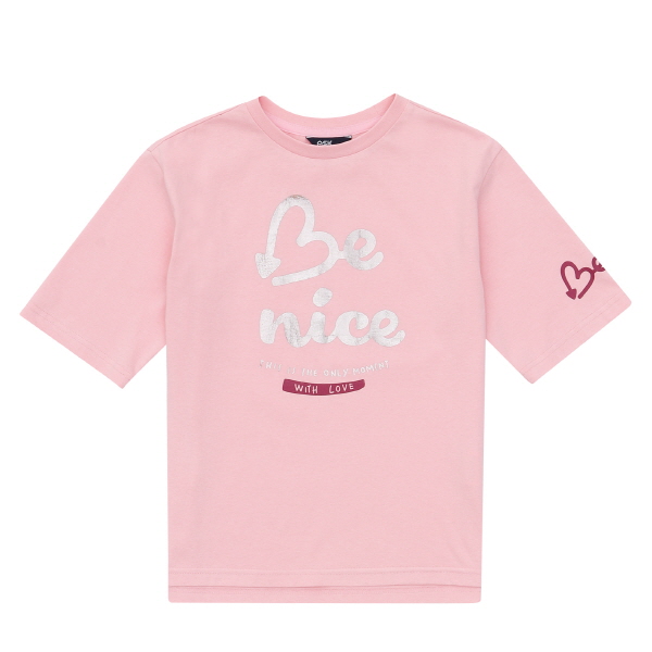 20수 mvs 싱글 소재의 티셔츠. 가슴과 소매 레터링을 호일 나염으로 포인트를 준 아이템. 6부 소매기장으로 간절기에 판매하기 좋은 아이템.