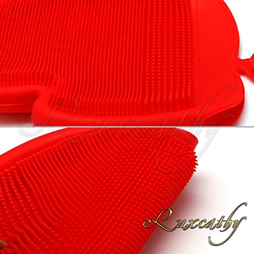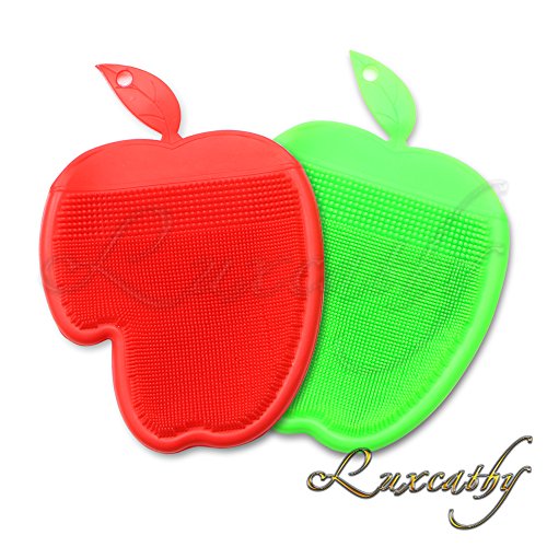 - Comes with 2 pack silicone apple shape washing gloves sponge , red and green color.