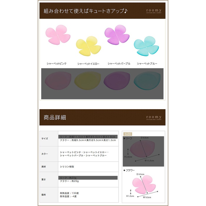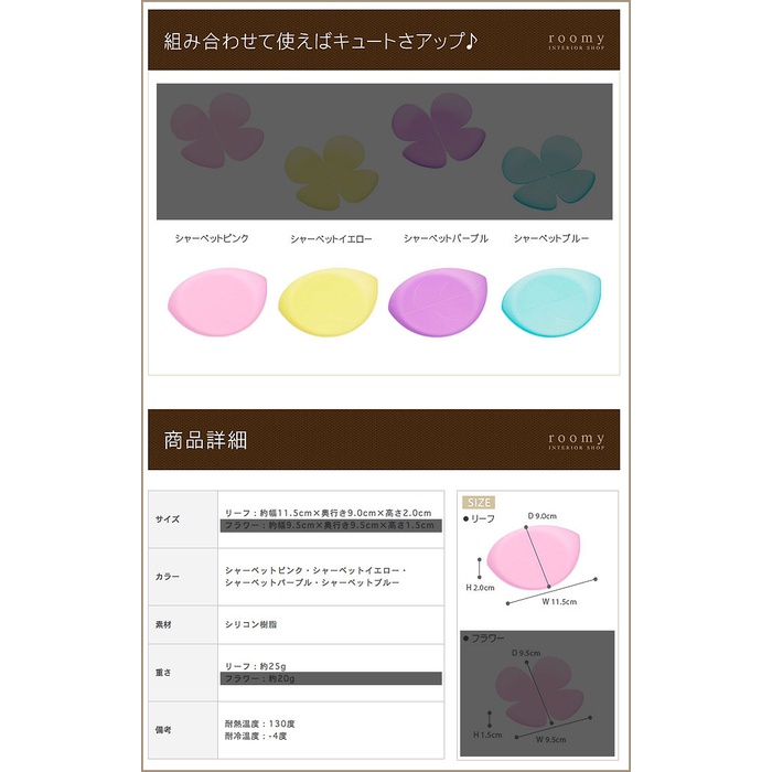 ■입체 코스터/플라워 스모키인 파스텔 컬러에,글래스나 찻잔을 친절하게 홀드 해 주는 코스터『 리프&플라워 』.감싸안는 듯한 입체형이 되어 있으므로,차가운 글래스부터 넘치는 수적(물방울)도 캐치 하고, 테이블을 더럽히지 않습니다.2개의 디자인에,컬러는 4종류 있기 때문에,주문으로 셀렉트 해 주세요.