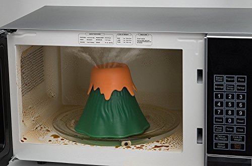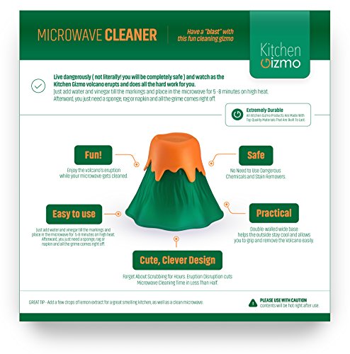Studio : Kitchen Gizmo Publisher : Kitchen Gizmo Binding : Kitchen Product Description Product Description; Does your microwave need cleaning? Is the dirt and grime so caked on that it takes ages and a lot of elbow grease to scrub off? Live dangerously (not really, you will be completely safe) and watch as the Kitchen Gizmo volcano erupts and does all the hard work for you. Just add water and vinegar till the markings and place in the microwave for 5 -8 minutes on high heat. Afterward, you just need a sponge, rag or napkin and all the grime comes right off. Please be aware that it takes about 2 minutes for the steam to start erupting from the volcano.